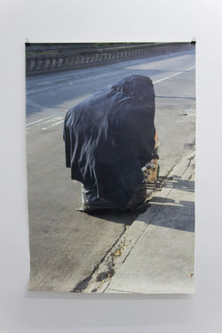 Eres un fantasma es el resultado de estar fotografiando desde hace un par de años objetos y rastros en el espacio público. Esta conducta deriva de mi obsesión por el medio fotográfico y de estar inmerso cotidianamente en una deriva urbana que refleja la actitud del caminante vagabundo.